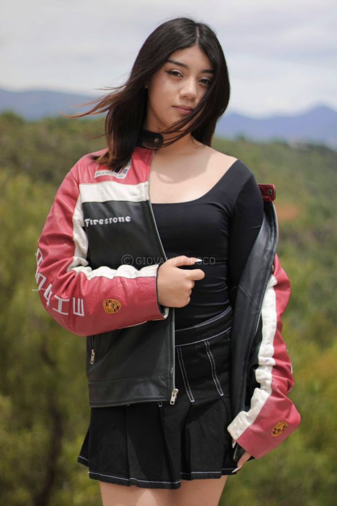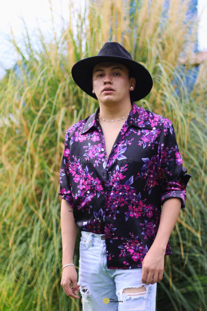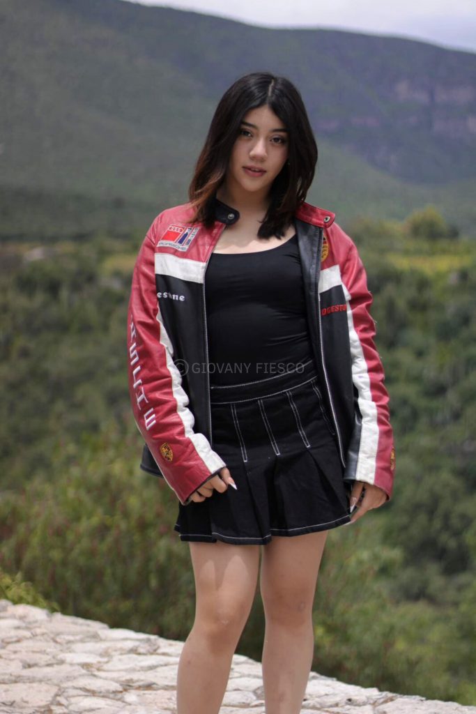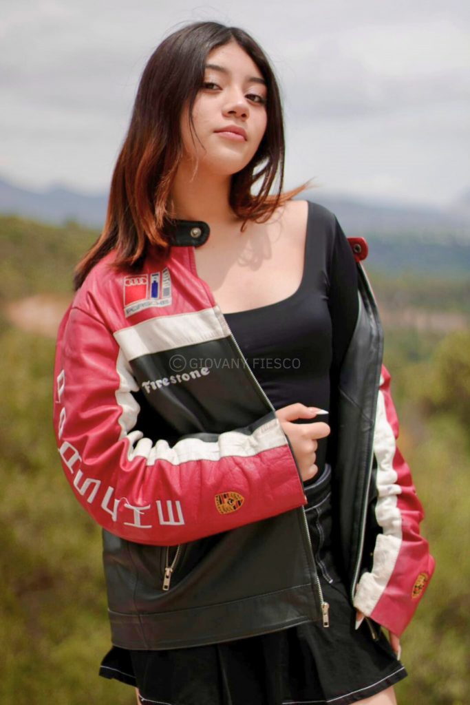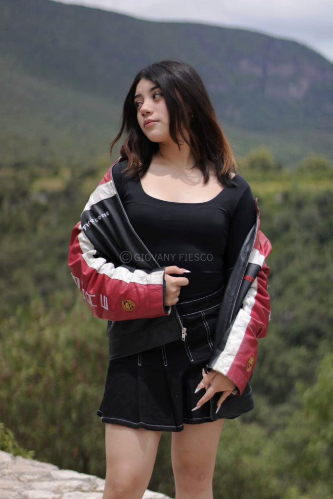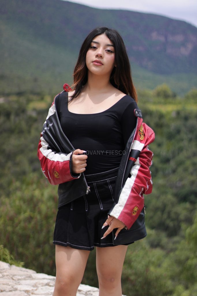 Retrato en exterior que integra actitud y paisaje, construyendo una narrativa visual entre presencia y entorno.