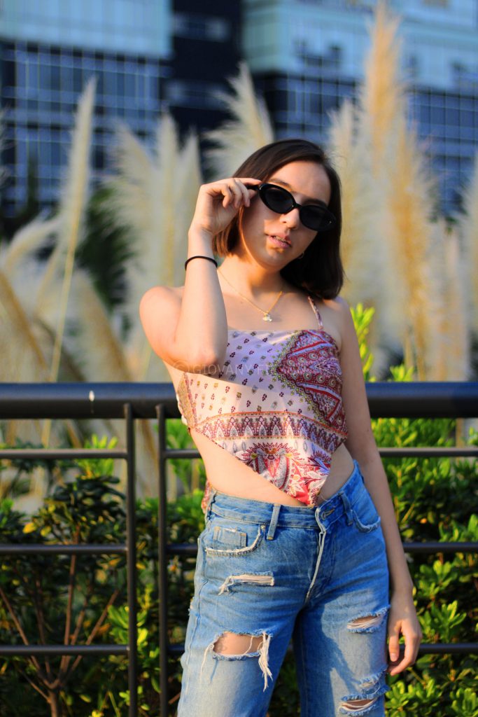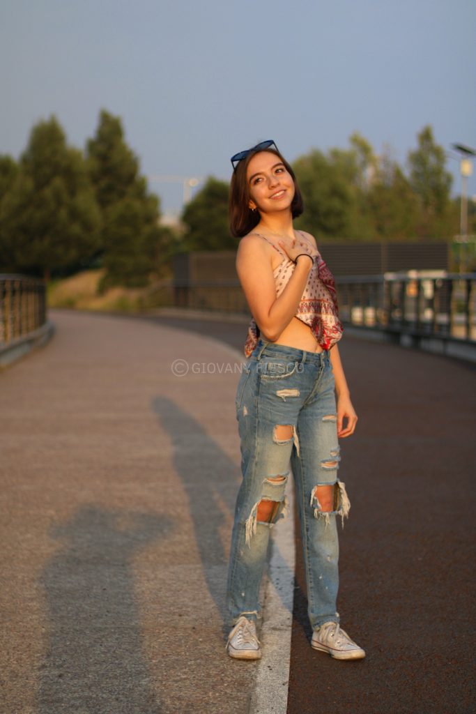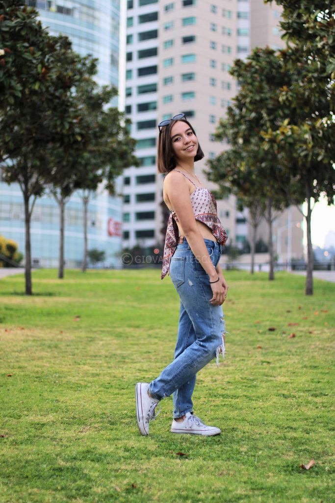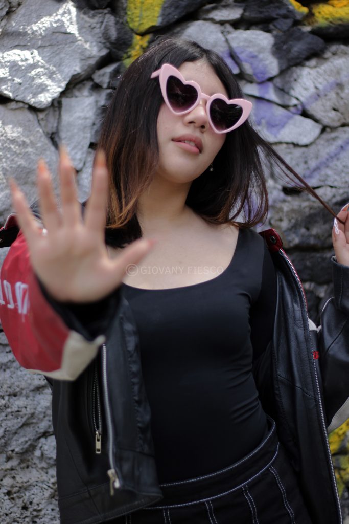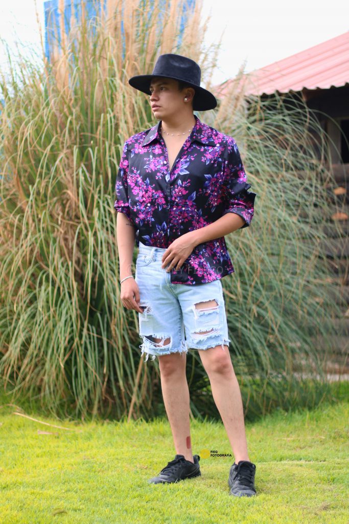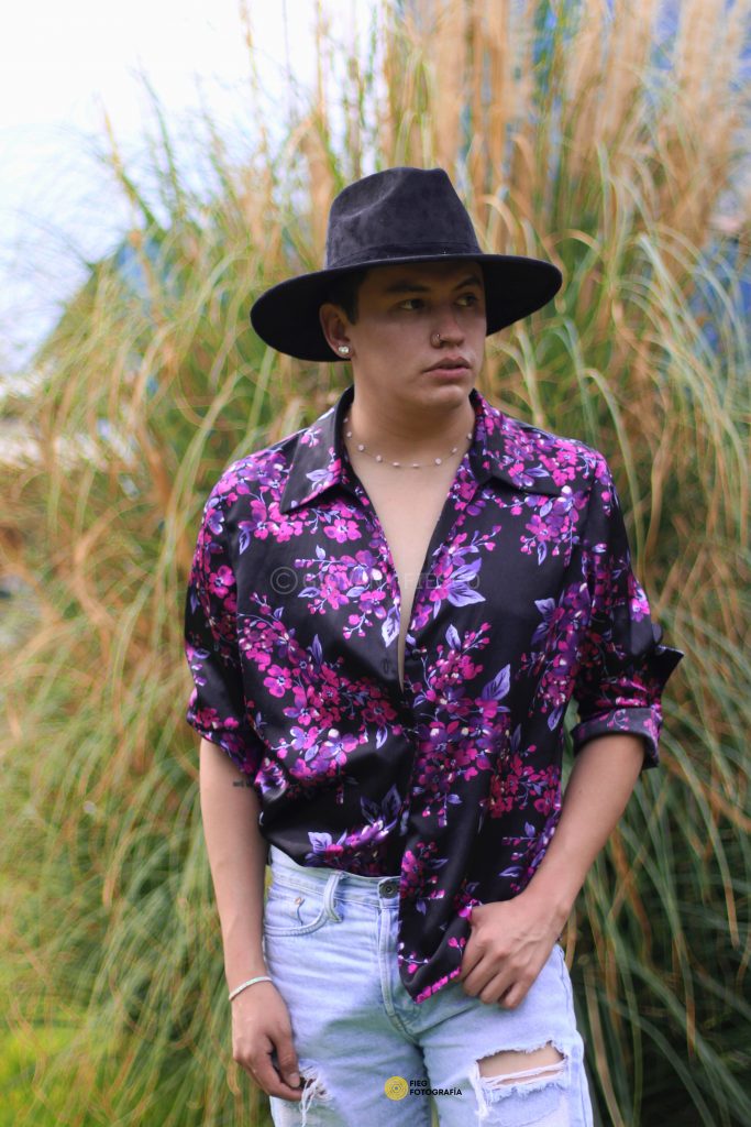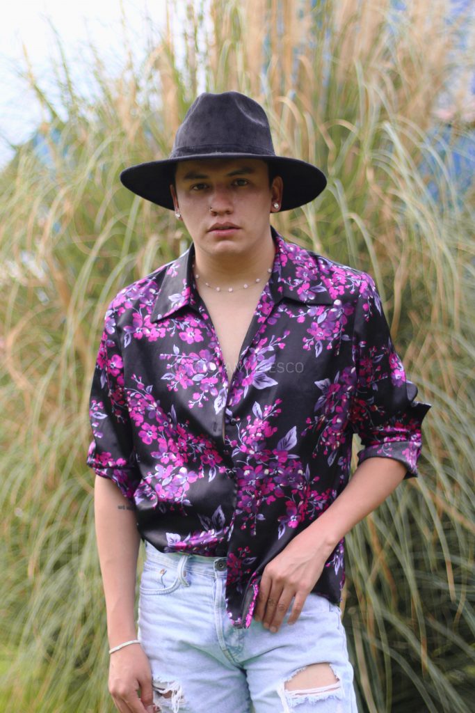 Retrato en exterior que integra actitud y paisaje, construyendo una narrativa visual entre presencia y entorno.